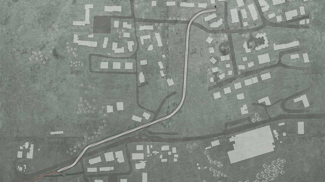 A visionary idea to link two vital parts of the town. The proposal consists of an elevated steel spine 669 metres long, walkable and equipped with moving walkways in the steepest sections. The structure, made of steel “vertebrae” rotating relative to each other, creates a dynamic vortex that is especially striking when experienced from inside. This project turns an urban connection into an architectural and perceptual experience.