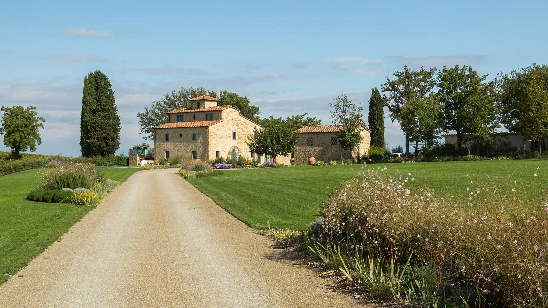 In the heart of the Chianti Classico, an ancient rural complex finds new life. The main building, converted to residential use, retains its original character even while being completely renewed. The outbuildings—stone structures of different ages—communicate with each other thanks to a park enriched with native species. The project combines rural tradition and contemporary comfort, restoring identity to a place that has been lived in and layered over time.